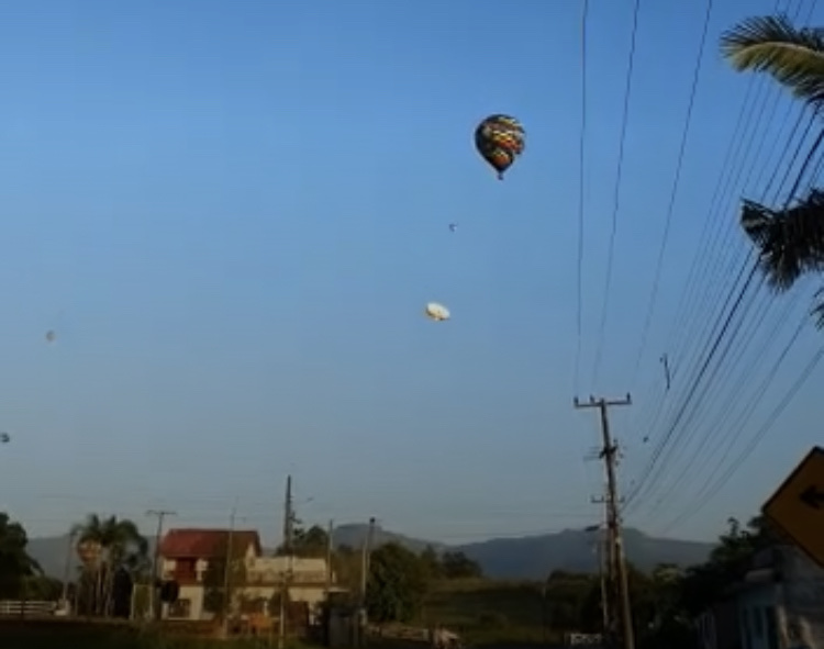 Vídeos: Dirigível que cruza SC chega ao Extremo Sul e encanta o céu na companhia de balões