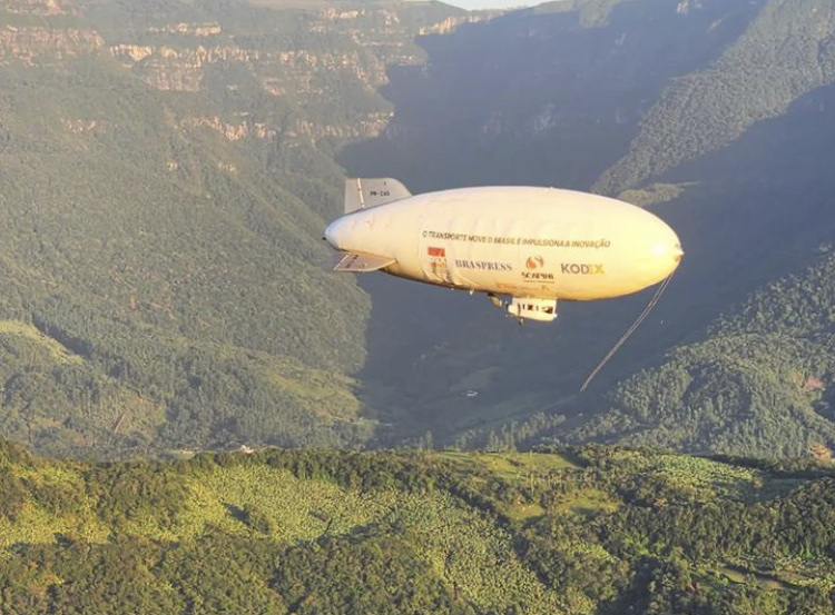 Com quase 50 metros de comprimento, o único dirigível a ter autorização comercial para sobrevoar a América Latina saiu de São Paulo no dia 17 para participar do evento “A Logística desembarca na South Summit”, que começa nesta quarta e segue até o dia 31 de março no Cais Embarcadero, na capital gaúcha.