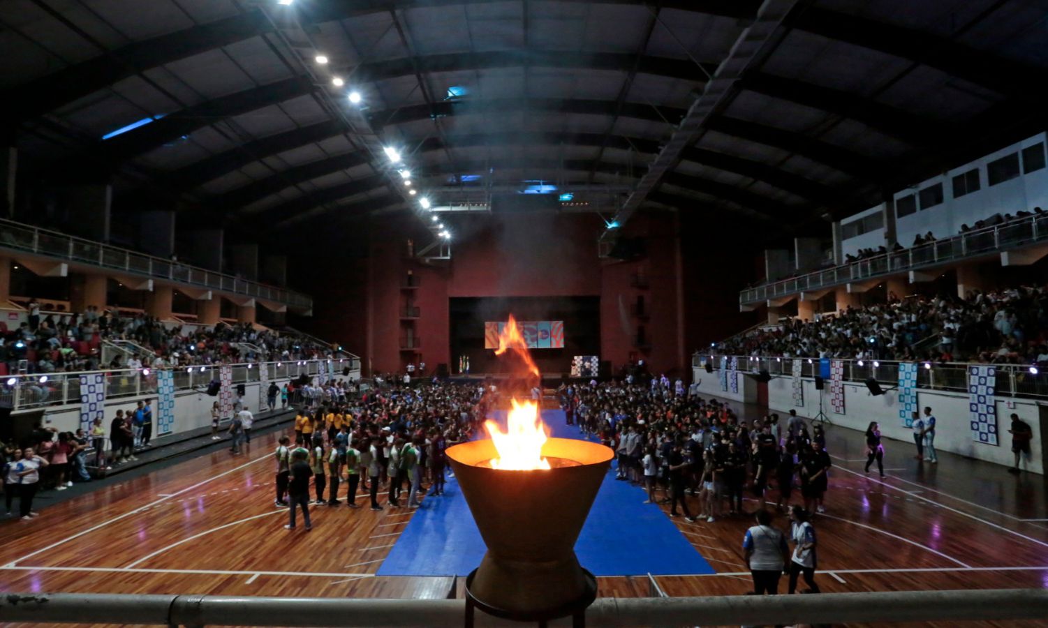 Outro momento importante foi o acendimento da pira olímpica. O revezamento foi feito por atletas de instituições de ensino que venceram o Jeville em 2022.