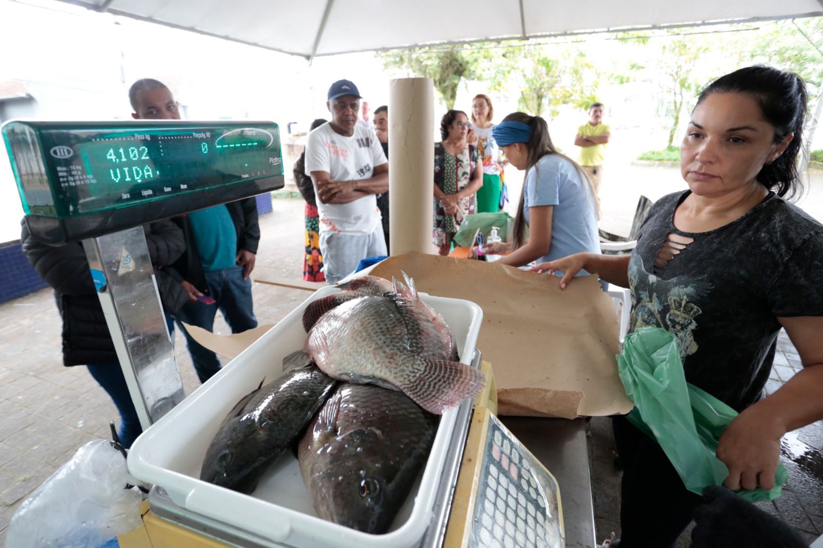 O peixe vivo é vendido no valor de R$19 o quilo de tilápia e R$25 o quilo de outras espécies. Fábio de Jesus aproveitou o evento parta garantir a refeição da Sexta-feira Santa. “O preço está justo e a tilápia está bonita”, elogia o consumidor.