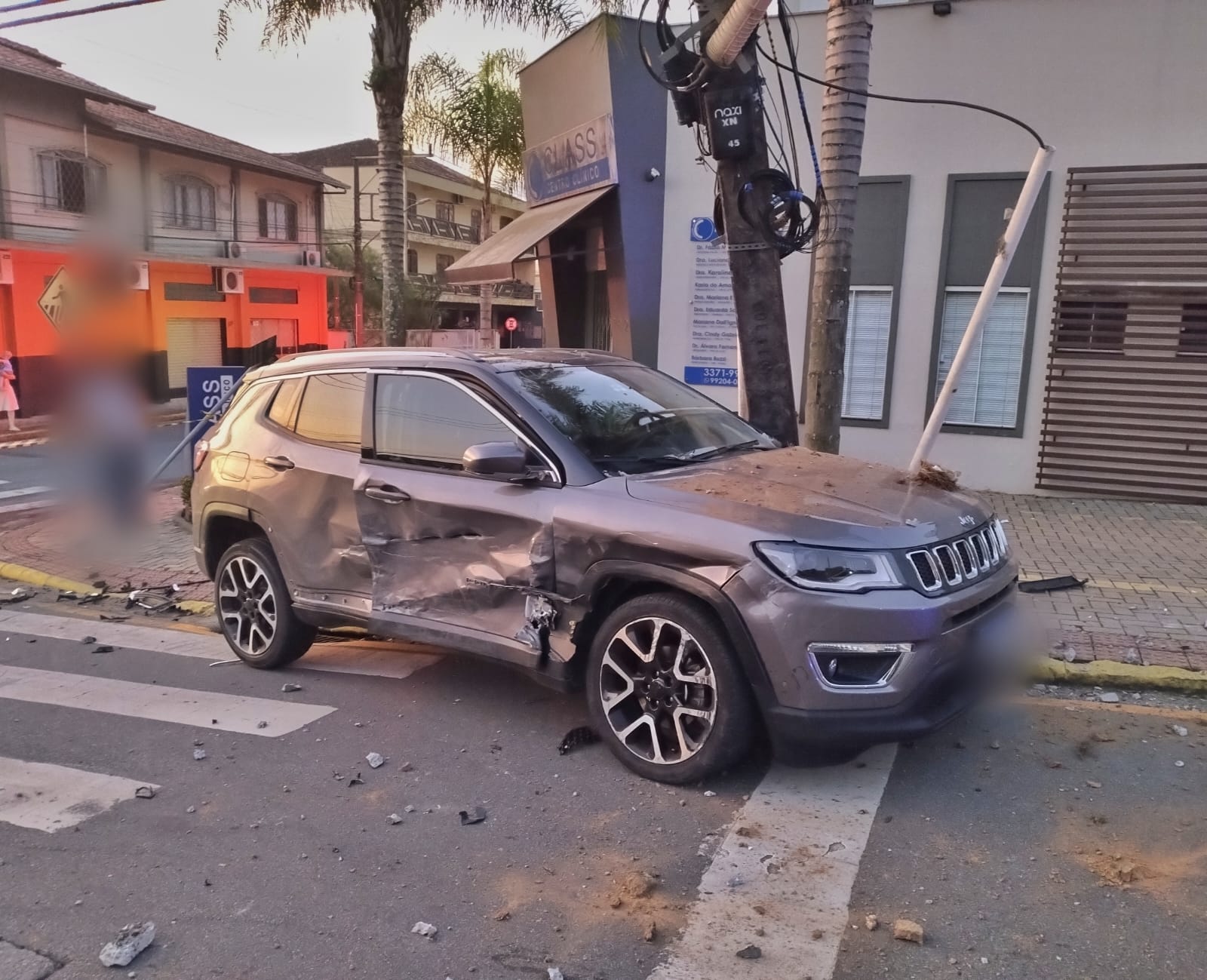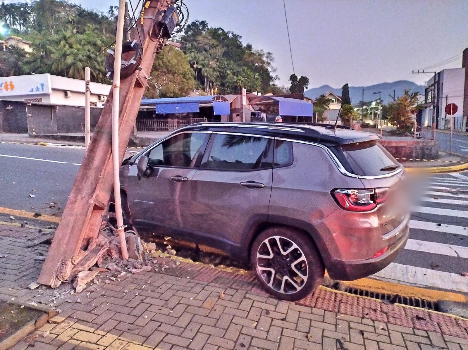 Após o impacto, o Compass acabou atingindo um poste. Cerca de 120 unidades consumidoras registraram falta de energia.