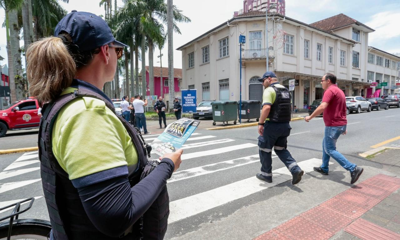 A Escola Pública de Trânsito (Eptran) da Prefeitura de Joinville iniciou nesta quinta-feira (11) a campanha educativa “No trânsito, somos todos pedestres”. A primeira ação ocorreu na faixa de pedestres em frente à Rua das Palmeiras, na Rua do Príncipe. Durante todo o ano, a campanha prosseguirá por demais vias do município.