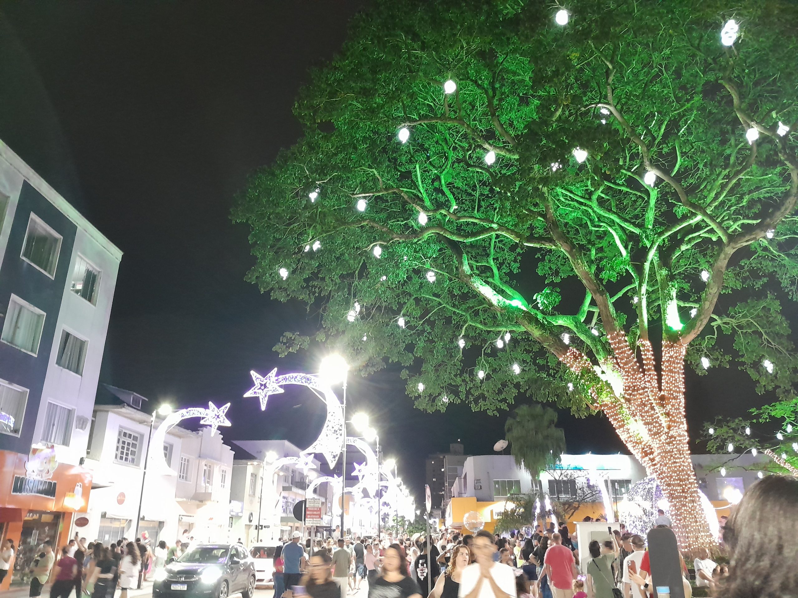 Jaraguá do Sul já está no clima do Natal. A noite desta terça-feira (19), foi marcada por um dos momentos mais aguardados pela população nesta época do ano: o tradicional acendimento das luzes de Natal e chegada do Papai Noel, no centro da cidade. Quem prestigiou o evento na Praça Ângelo Piazera teve a oportunidade de ver de perto todo o colorido da decoração pensada nos mínimos detalhes para ressaltar o espirito natalino na cidade. Não foram poucas as expressões de surpresa e encantamento do público. O tema deste ano da decoração natalina é “Estrelas”.