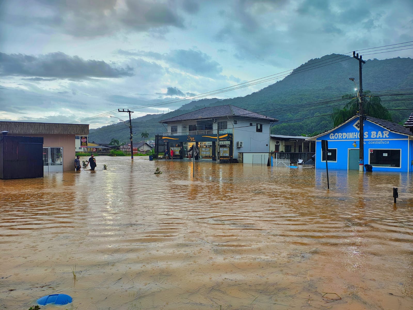 O Corpo de Bombeiros Voluntários de Guaramirim recebeu diversos chamados de pessoas ilhadas pedindo por ajuda.