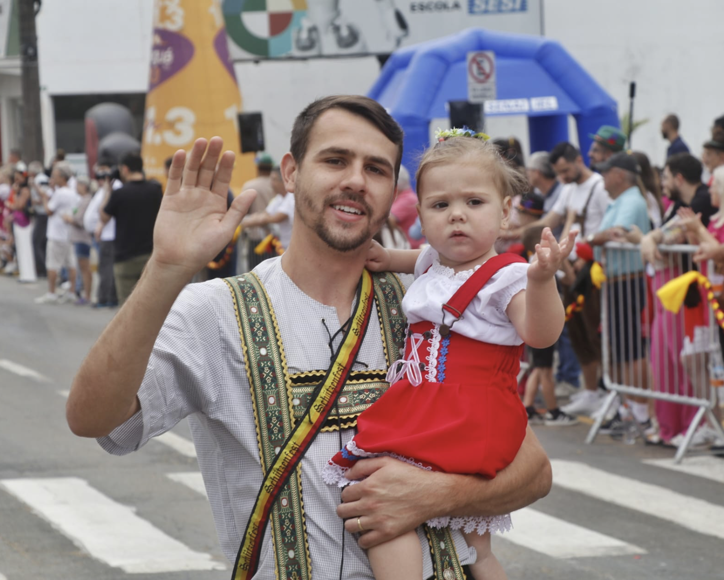 Jaraguá do Sul acordou colorida neste domingo (9). Era impossível passar pela Rua Walter Marquardt sem sentir aquele clima: sanfona tocando, banda afinada, traje típico passando de geração em geração… e, claro, o sorriso fácil de quem esperou o ano inteiro pela Schützenfest.