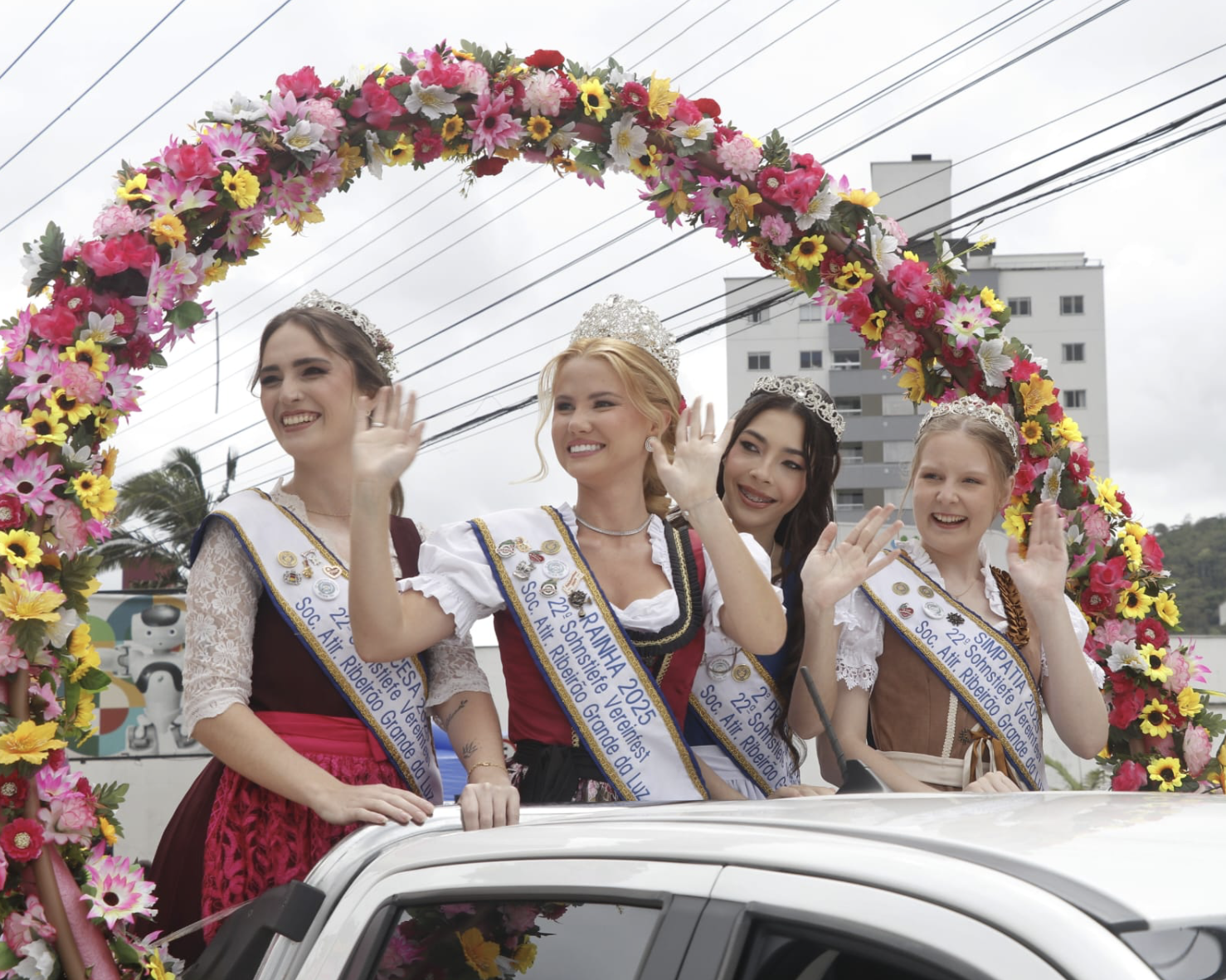 O primeiro desfile da festa reuniu as sociedades de tiro, grupos culturais, famílias inteiras vestidas a caráter e as majestades da beleza e do tiro que esbanjaram simpatia do começo ao fim. Pelotões animados, música típica e aquele brinde de “Ein Prosit!” não podia faltar!