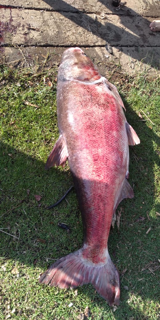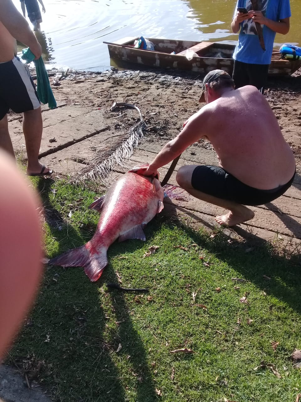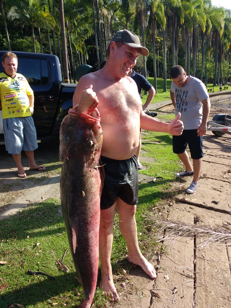 A tarde desta sexta-feira (8), rendeu uma boa pescaria para o pescador Cleverson Bauer e seus amigos. Eles estavam pescando na lagoa do Parque Malwee quando foram surpreendidos por uma carpa cabeçuda, de aproximadamente 40 Kg que mordeu a isca.