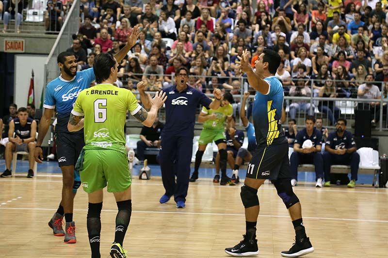 Com uma grande festa dos amantes do voleibol na Arena Jaraguá, o amistoso entre Sesc-RJ e Apan/Blumenau na noite de quinta-feira (10) foi um sucesso.