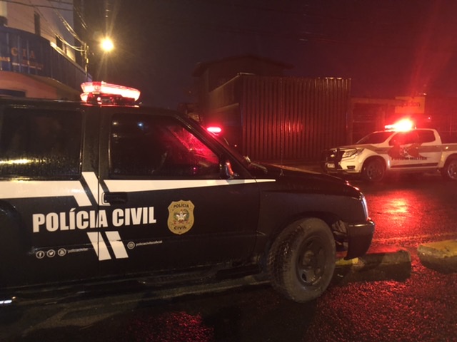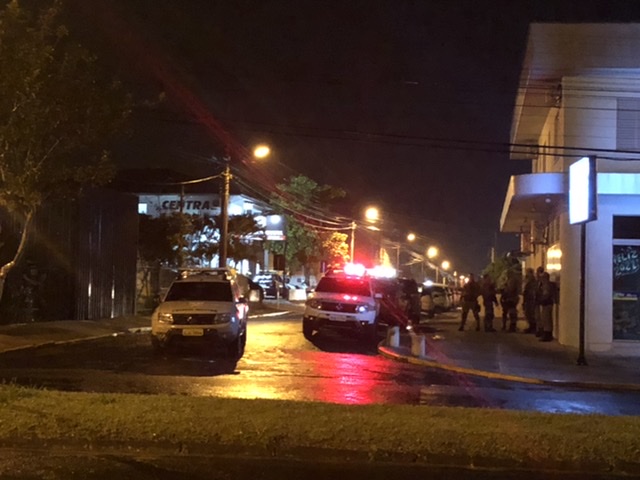 As ruas do entorno da Central de Polícia de Araranguá são iluminadas, na madrugada desta quinta-feira, pelas luzes dos giroflex.