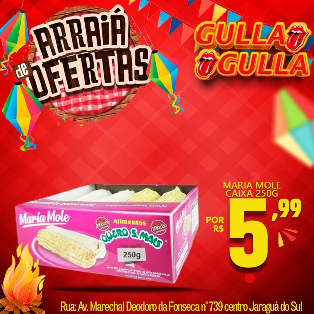 A Gulla Gulla existe há 3 anos em Jaraguá do Sul e é conhecida pela qualidade, quantidade e preços diferenciados. Sempre com muitas opções de produtos especializados para festas no geral, exemplo festa de aniversário, jantares, entre outros.