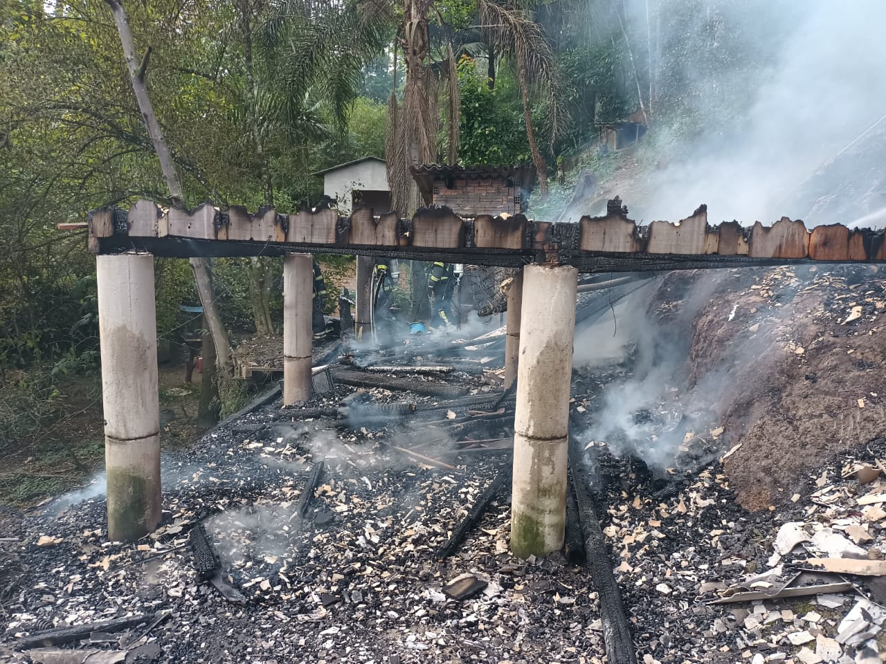 Um incêndio destruiu uma residência localizada na rua Luiz Rogazzon, no bairro São Simão, em Criciúma, na tarde desta terça-feira, por volta de 16h30min.