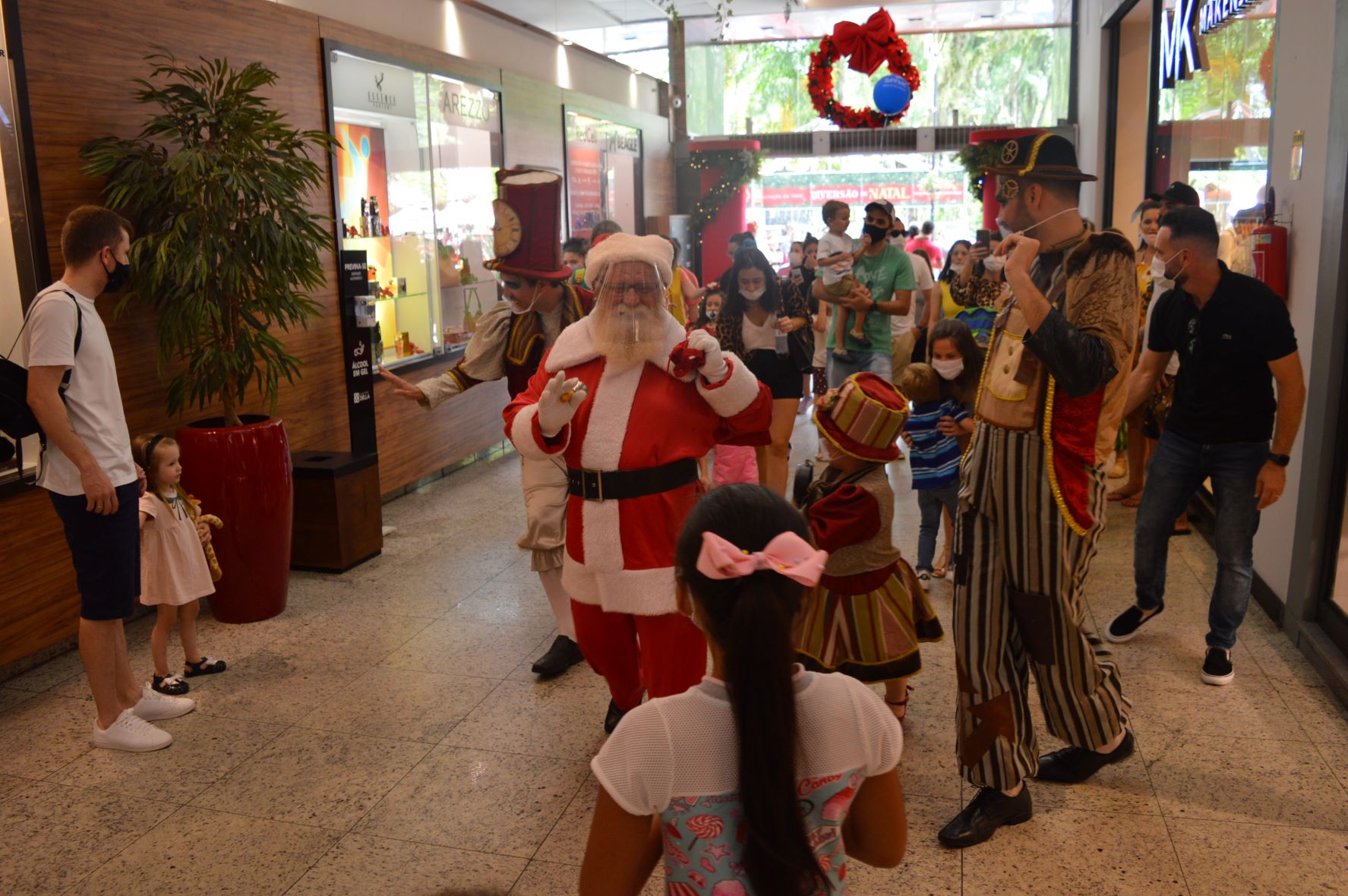 Da Praça, ele passeou pelo shopping e se dirigiu a sua poltrona, localizada no primeiro andar, e depois foi ao Parque do Noel, um espaço repleto de atrações para o público infantil durante todos os sábados na Praça de Alimentação, reunindo jogos de argola, alvo, basquete, balanço e escorregador, com o auxílio dos ajudantes do Papai Noel.