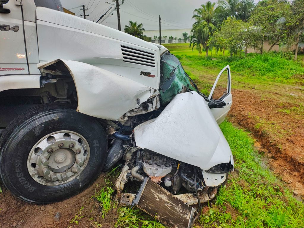 Corpo de motorista é levado ao IML após colisão na SC-110, em Jaraguá do Sul