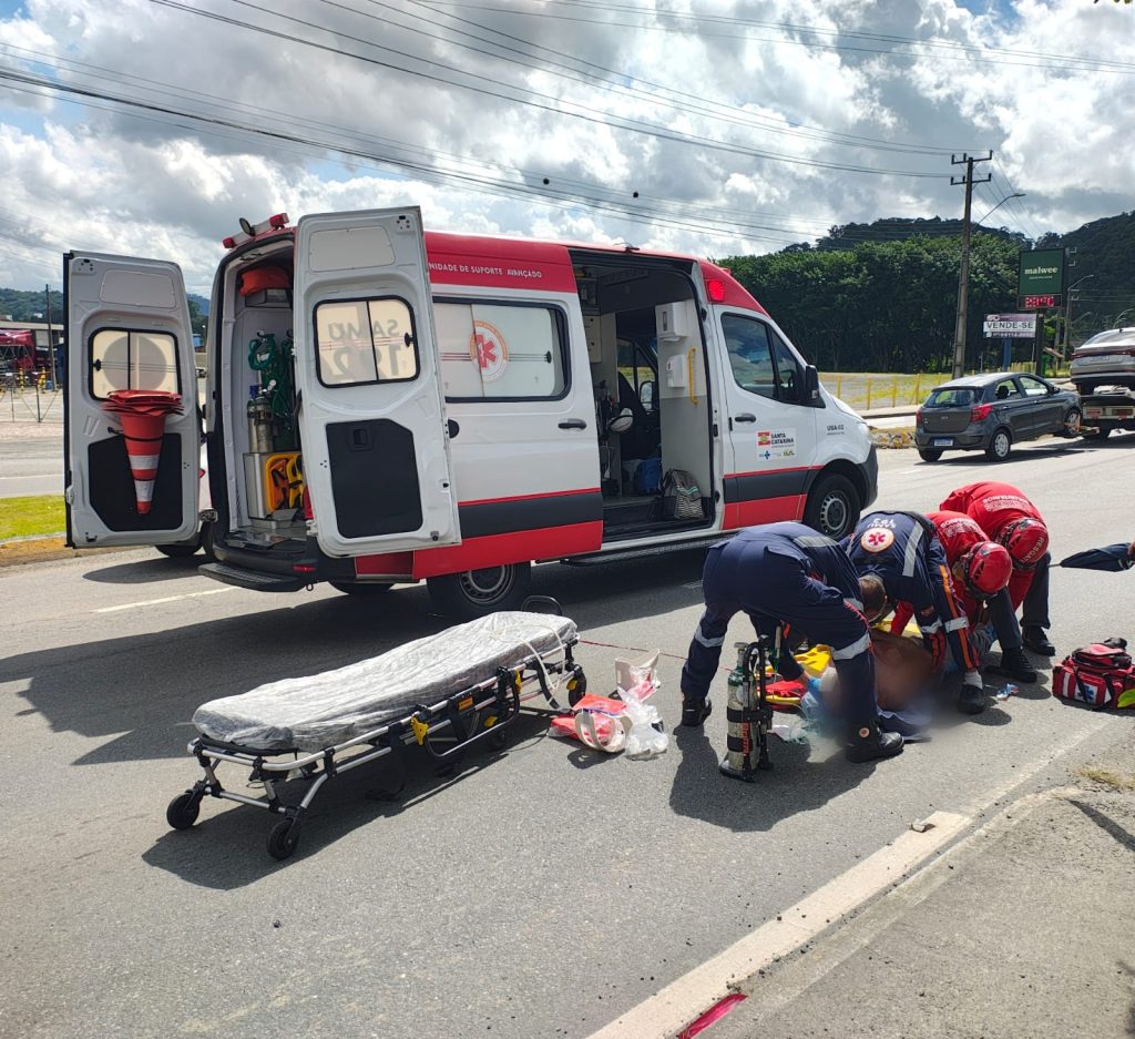 Homem em bicicleta elétrica é atingido por caminhão de cimento em Jaraguá do Sul