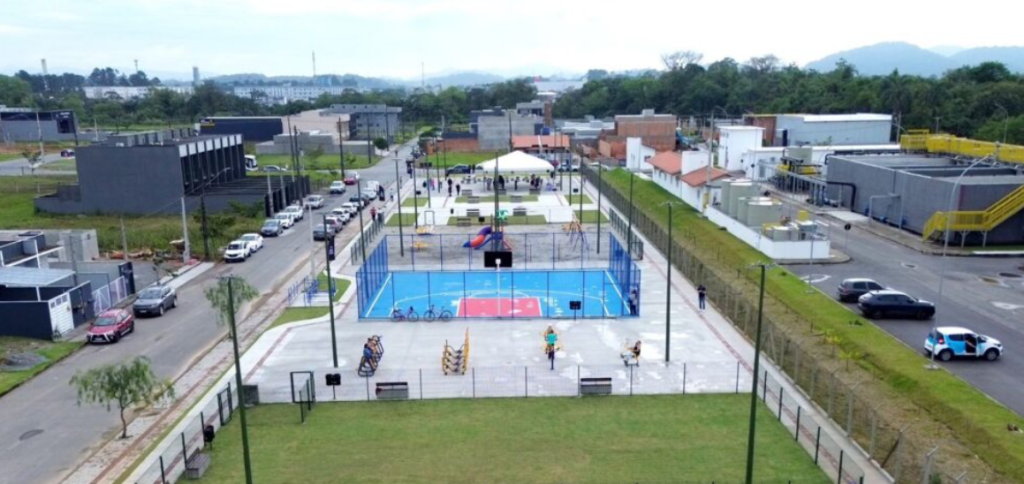 Bairro Vila Nova recebe praça com mais de 3 mil metros quadrados equipada com parquinho e academia em Joinville