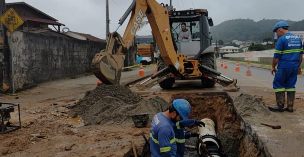 Companhia Águas de Joinville trabalha em conserto emergencial na rua Tuiuti