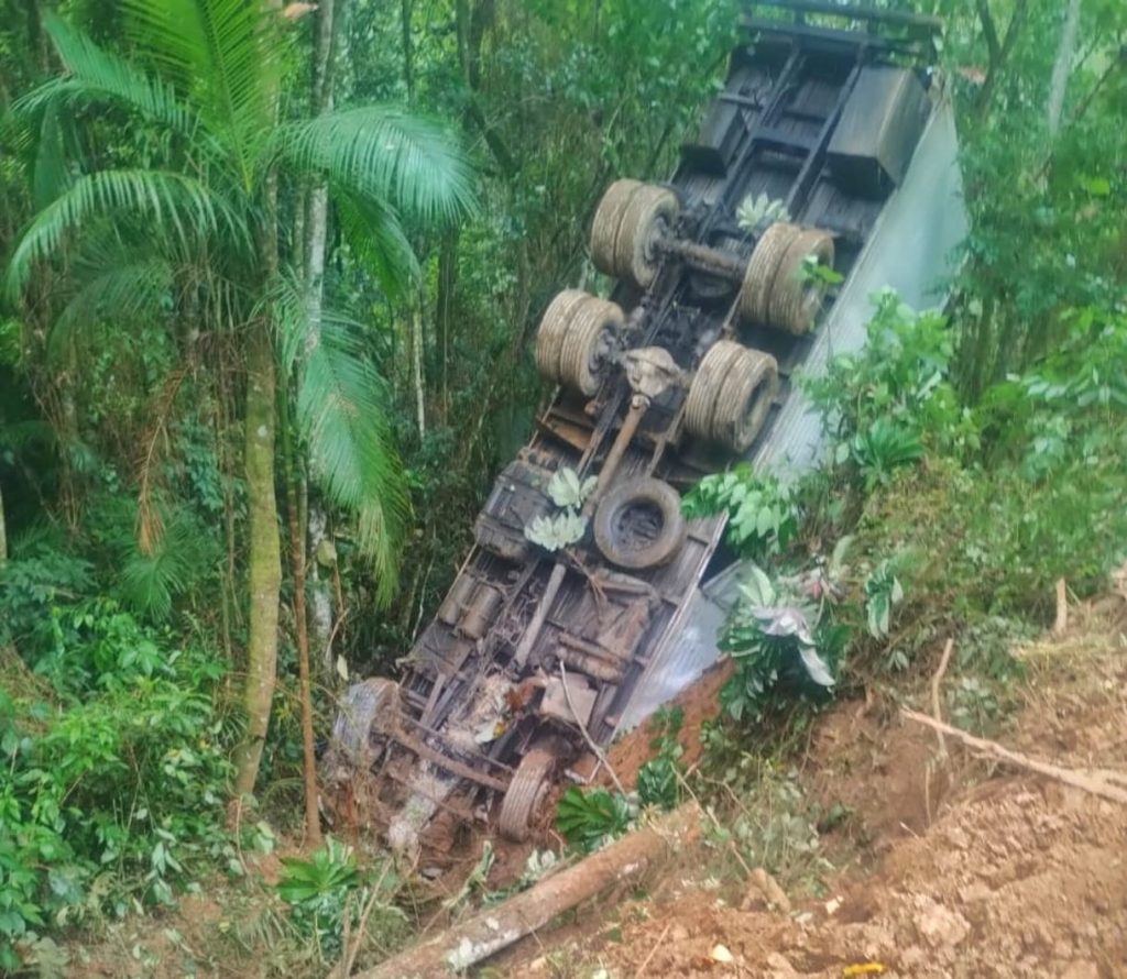 Caminhão sai da pista e capota em ribanceira na BR-280