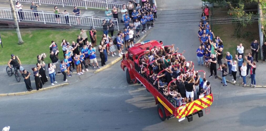 Delegação vencedora da Olesc percorre ruas de Joinville e recebe homenagem