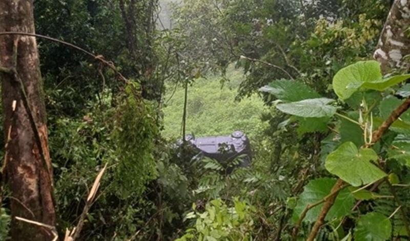 Carro despenca de ribanceira na BR-280 e cinco pessoas ficam feridas