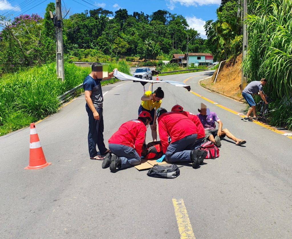Dois ciclistas ficam feridos após colisão com carro em Jaraguá do Sul