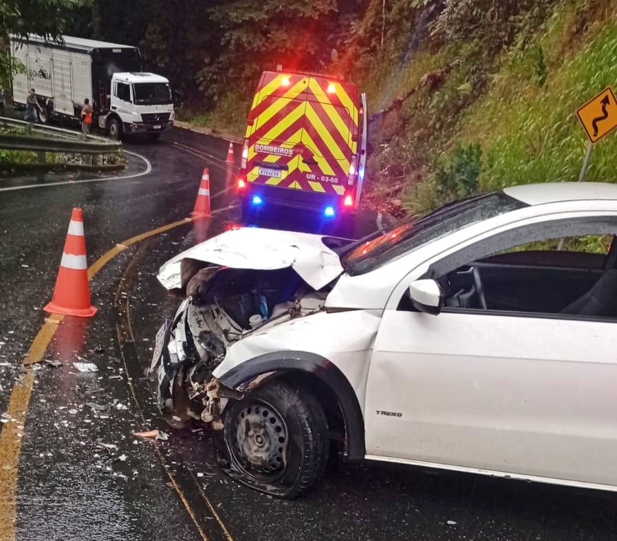 Colisão entre caminhão e carro mobiliza bombeiros em Jaraguá do Sul