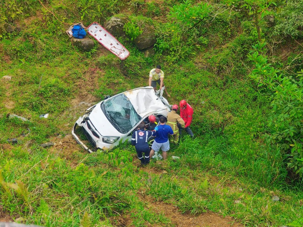Motorista fica ferida após carro cair em ribanceira de 25 metros em Jaraguá do Sul