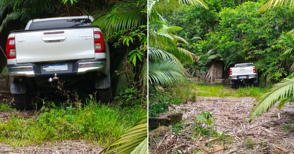 Caminhonete furtada é encontrada abandonada em área de mata em Massaranduba