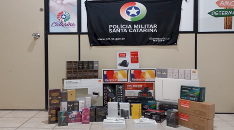 PM apreende eletrônicos de origem estrangeira em ônibus em Porto União