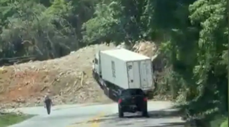 Motorista usa área de escape em obras para parar caminhão sem freios na Serra Dona Francisca