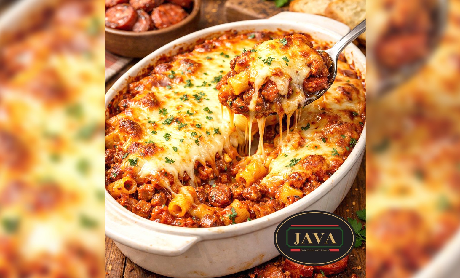 Use a massa de linguiça Java pronta — sem precisar tirar a pele ou moer. Mais praticidade e mais sabor no preparo.