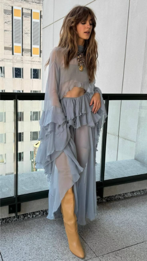 Peças fluídas, esvoaçantes e com babados: