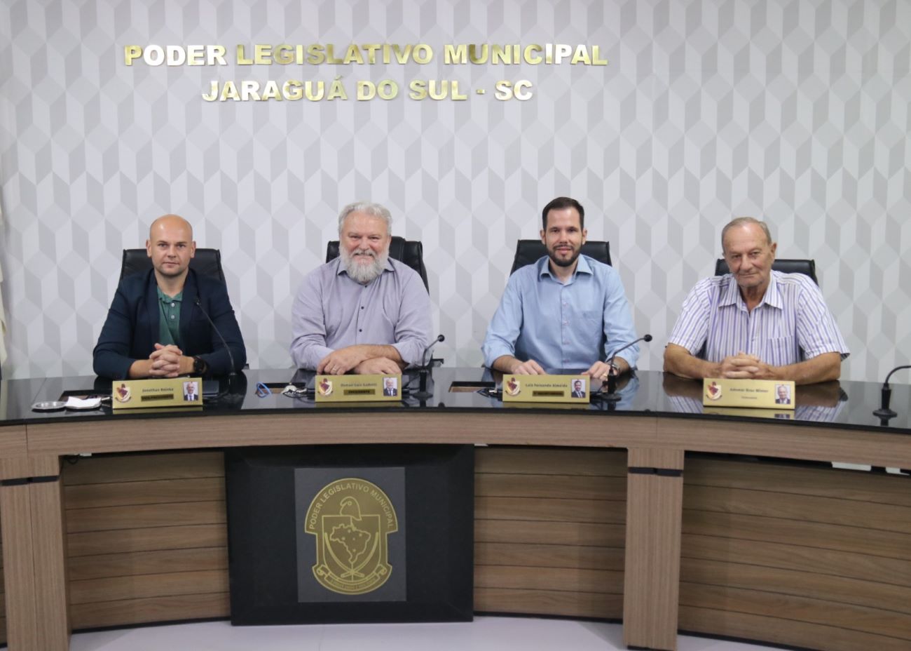 Os vereadores de Jaraguá do Sul se reuniram, na manhã desta terça-feira (19), na Câmara Municipal para realizar a última sessão ordinária de 2023. E conforme o Regimento Interno do Legislativo jaraguaense, foi eleita a nova Mesa Diretora que conduzirá os trabalhos legislativos do ano que vem.