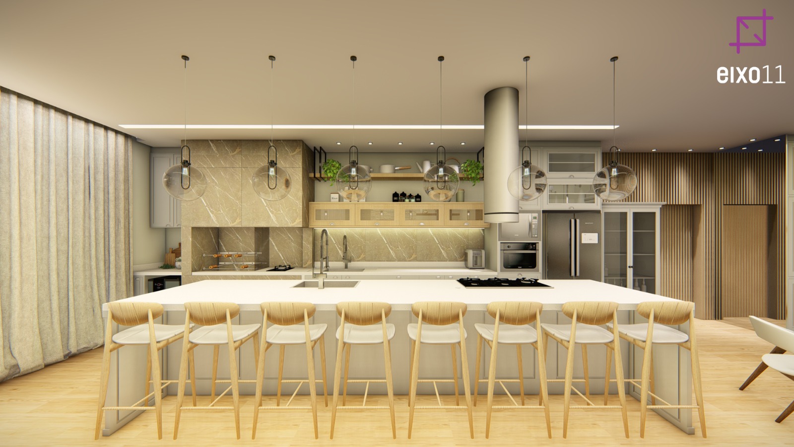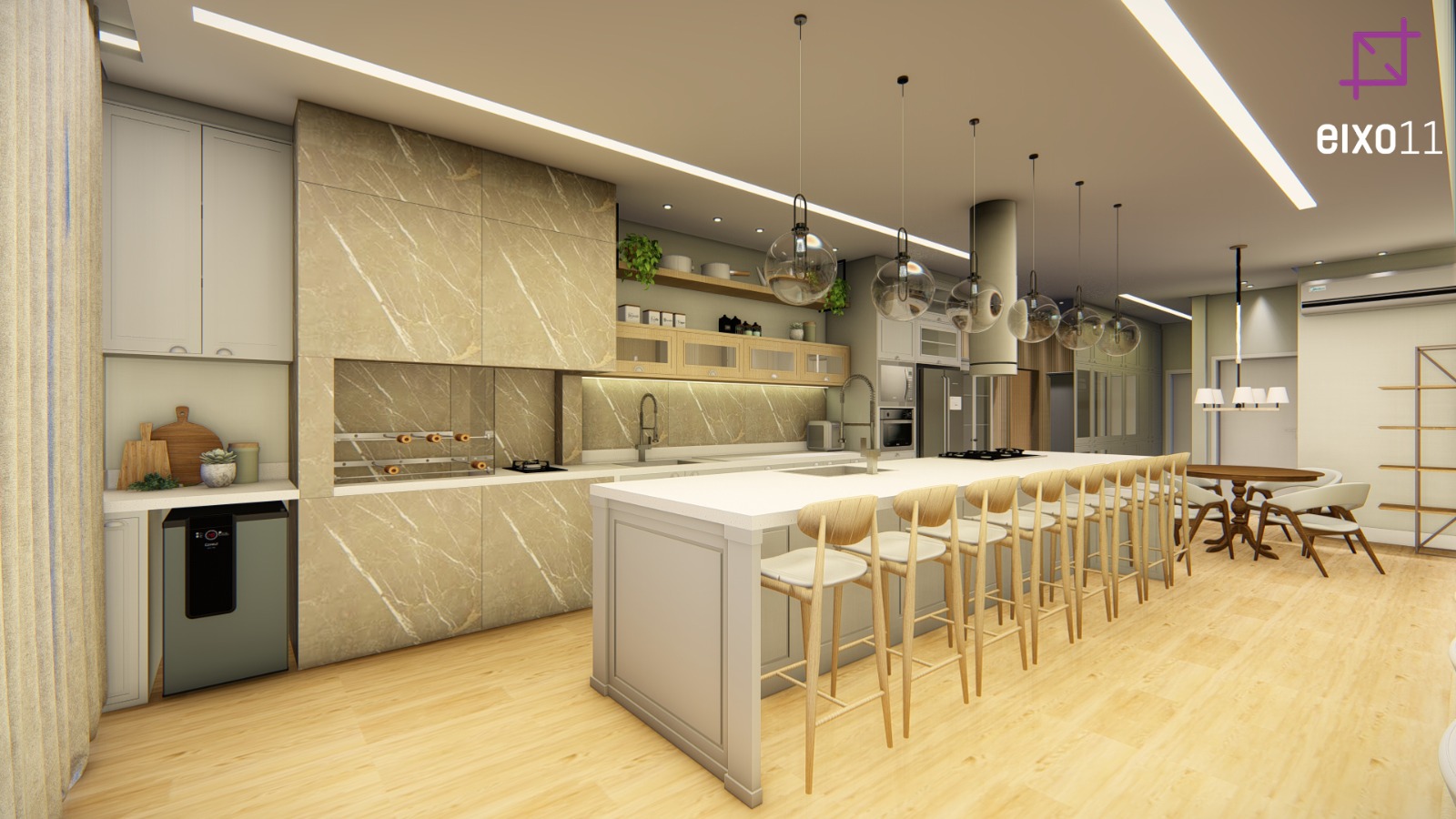 Projetos arquitetônicos que incorporam churrasqueiras buscam criar ambientes funcionais, muitas vezes a envolvendo na integração de áreas de convívio como: sala de jantar, cozinha, sala de estar, área de festas, lounges e piscinas, otimizando os espaços, sem a necessidade de delimitar os ambientes, atendendo um número a mais de pessoas e sobretudo resultando em ambientes amplos e com maior conexão entre as pessoas.