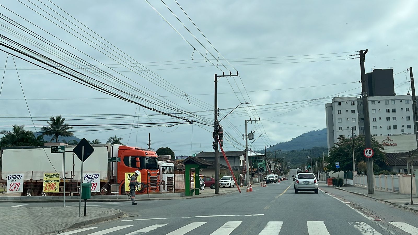 O mutirão de higienização das redes das empresas que compartilham da estrutura dos postes de iluminação pública em Jaraguá do Sul, removeu cabeamentos soltos ou desativados na Rua Bertha Weege nesta quarta-feira (5).