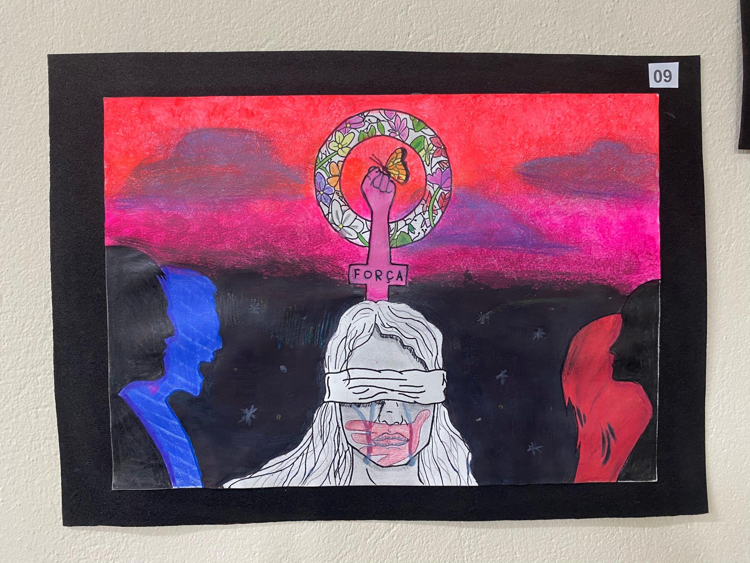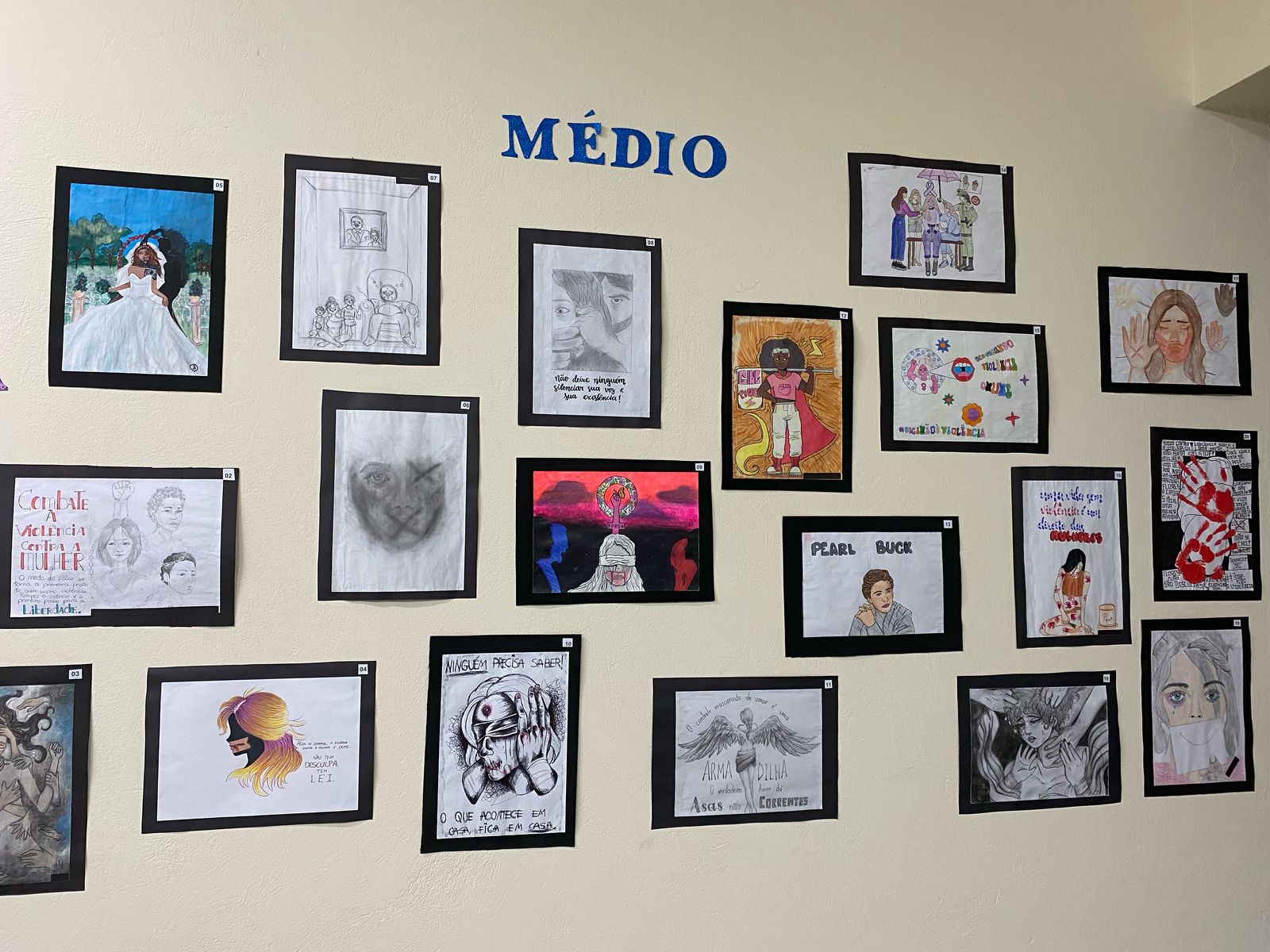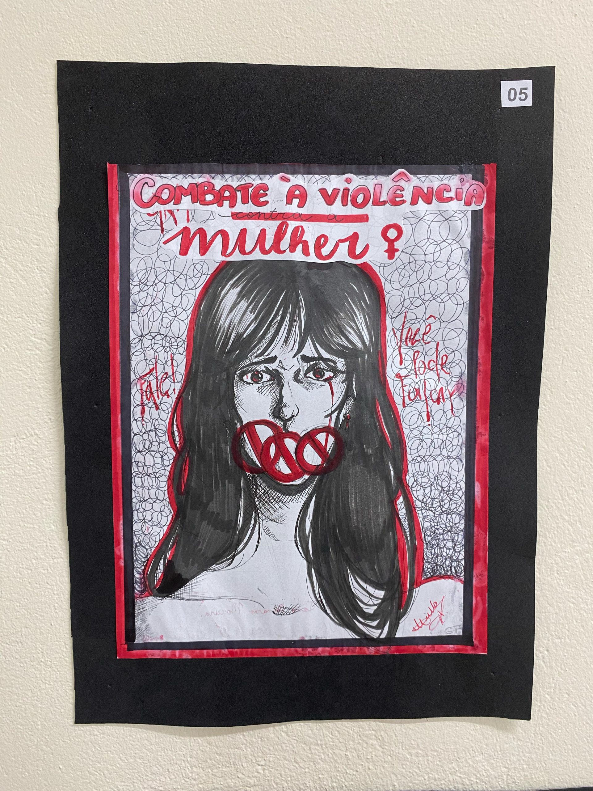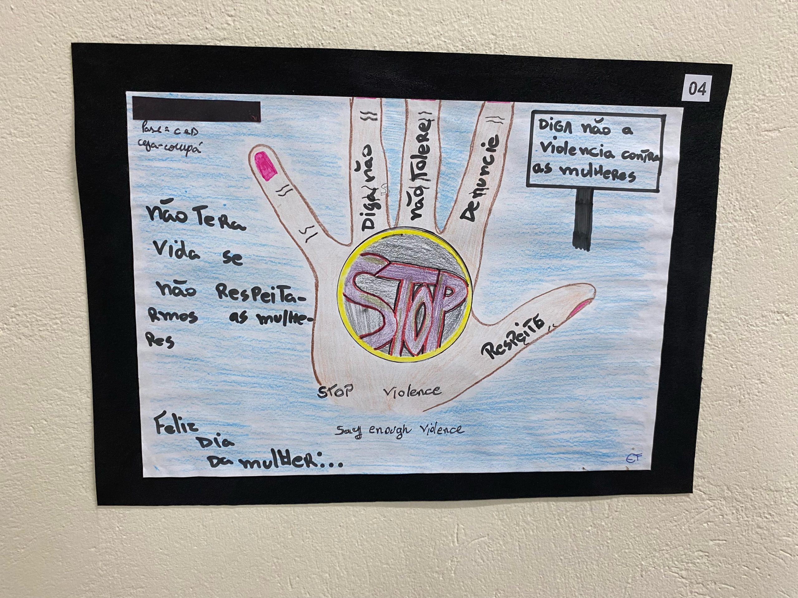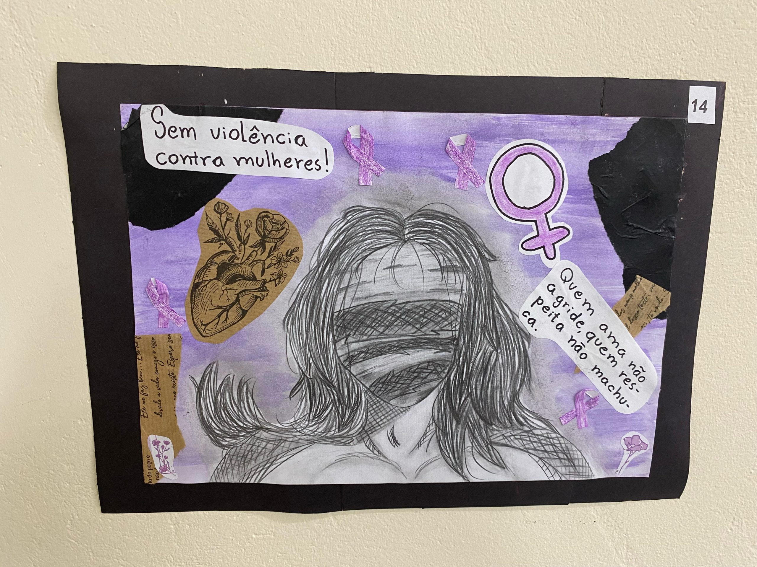 “A gente trabalha a questão da prevenção com os alunos e, como é o mês de março, dedicado às mulheres, a equipe teve a ideia de trabalhar essa questão em forma de expor os desenhos dos alunos relacionados a essa temática”, explica Iara Lúcia Fonseca Santos, assistente social.
