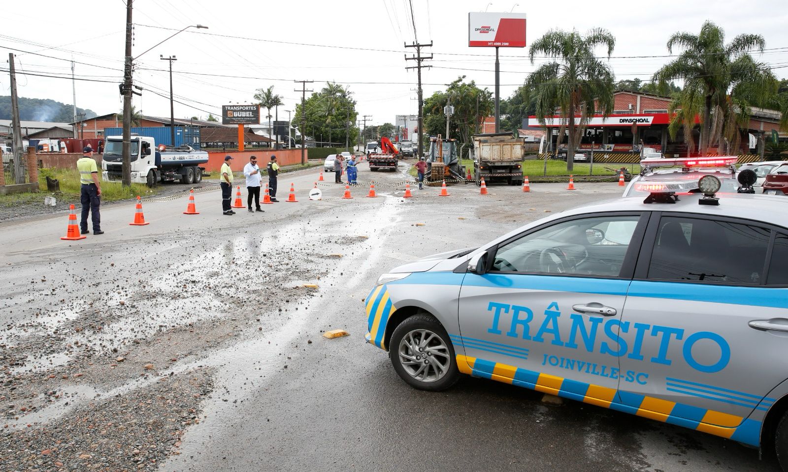 Para que os profissionais possam trabalhar no local, o trânsito de veículos para quem vem no sentido Bairro/Centro está sendo desviado no Elevado Heinz Schulz. Os motoristas têm a opção de seguir pela avenida Edgar Meister, sentido Univille, ou sentido BR-101. Ainda há a possibilidade de retornar ao bairro pela rua Dona Francisca.