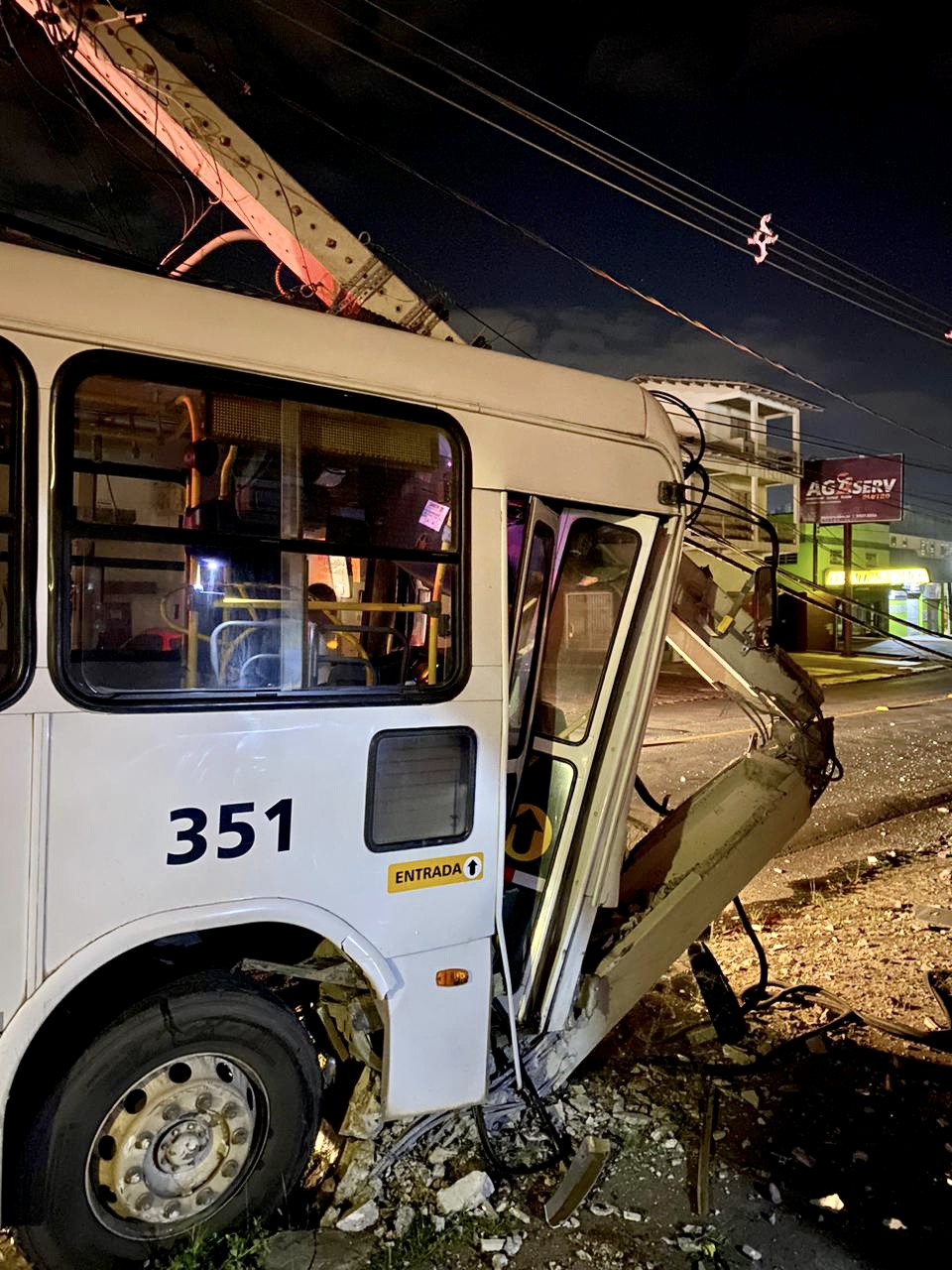 Quando os bombeiros chegaram ao local, realizaram o gerenciamento de riscos, constataram que havia fios de alta e baixa tensão sobre o veículo e que o transformador havia caído. Na cabine do ônibus havia uma única vítima, o motorista, que estava consciente e orientado, mas não conseguia sair por meios próprios.
