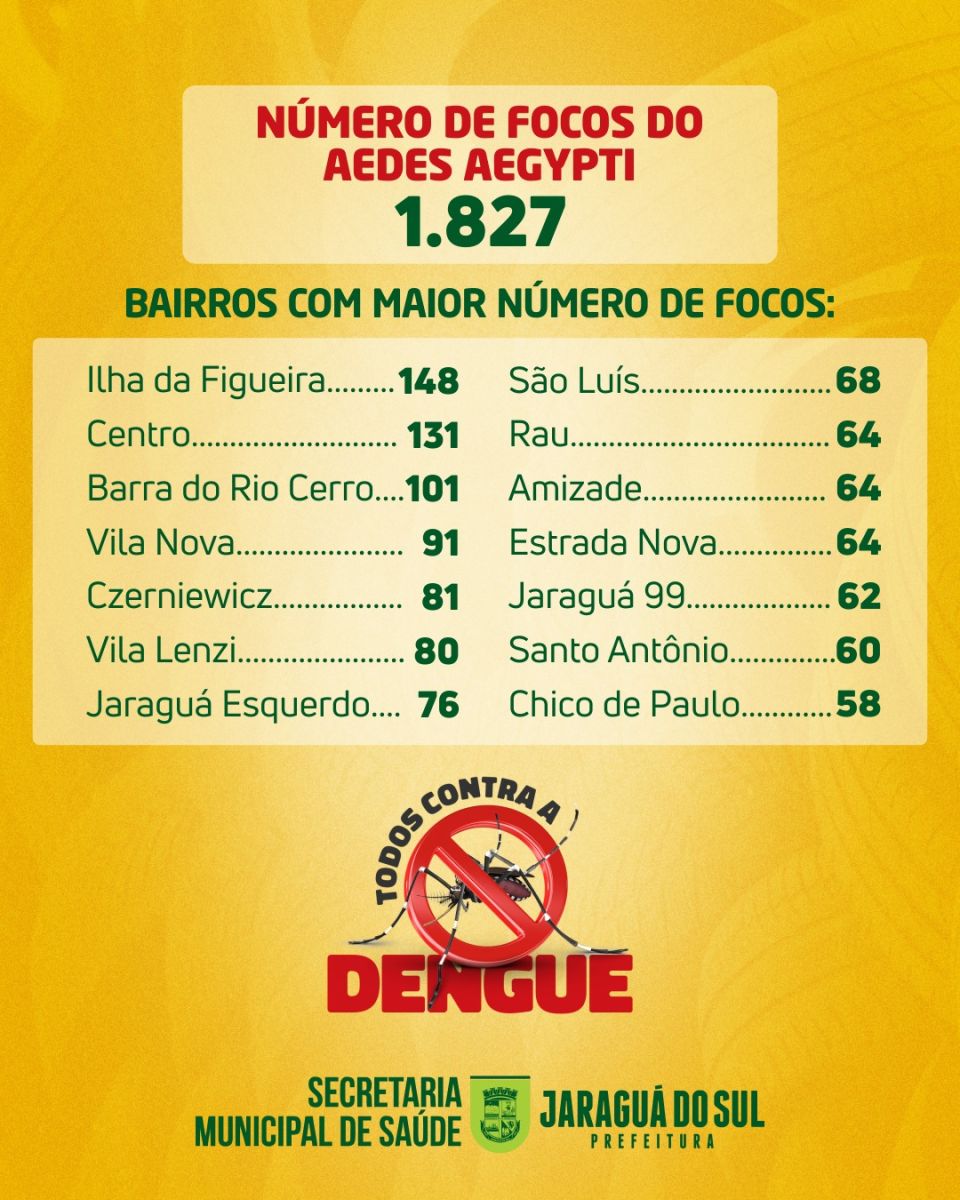 O Boletim da Dengue divulgado nesta quinta-feira (27) aponta que, nos últimos três dias, Jaraguá do Sul registrou 514 casos da doença, chegando a um total de 15.170 ao longo de 2024.