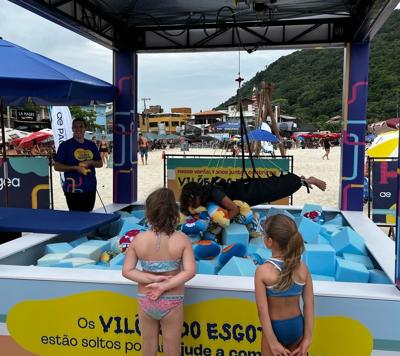 Com o tema “Juntos Contra os Vilões do Esgoto”, a iniciativa levou à praia uma abordagem leve e interativa para tratar de questões fundamentais à preservação ambiental, convidando o público a refletir sobre atitudes do dia a dia que impactam diretamente rios, mares e nascentes.