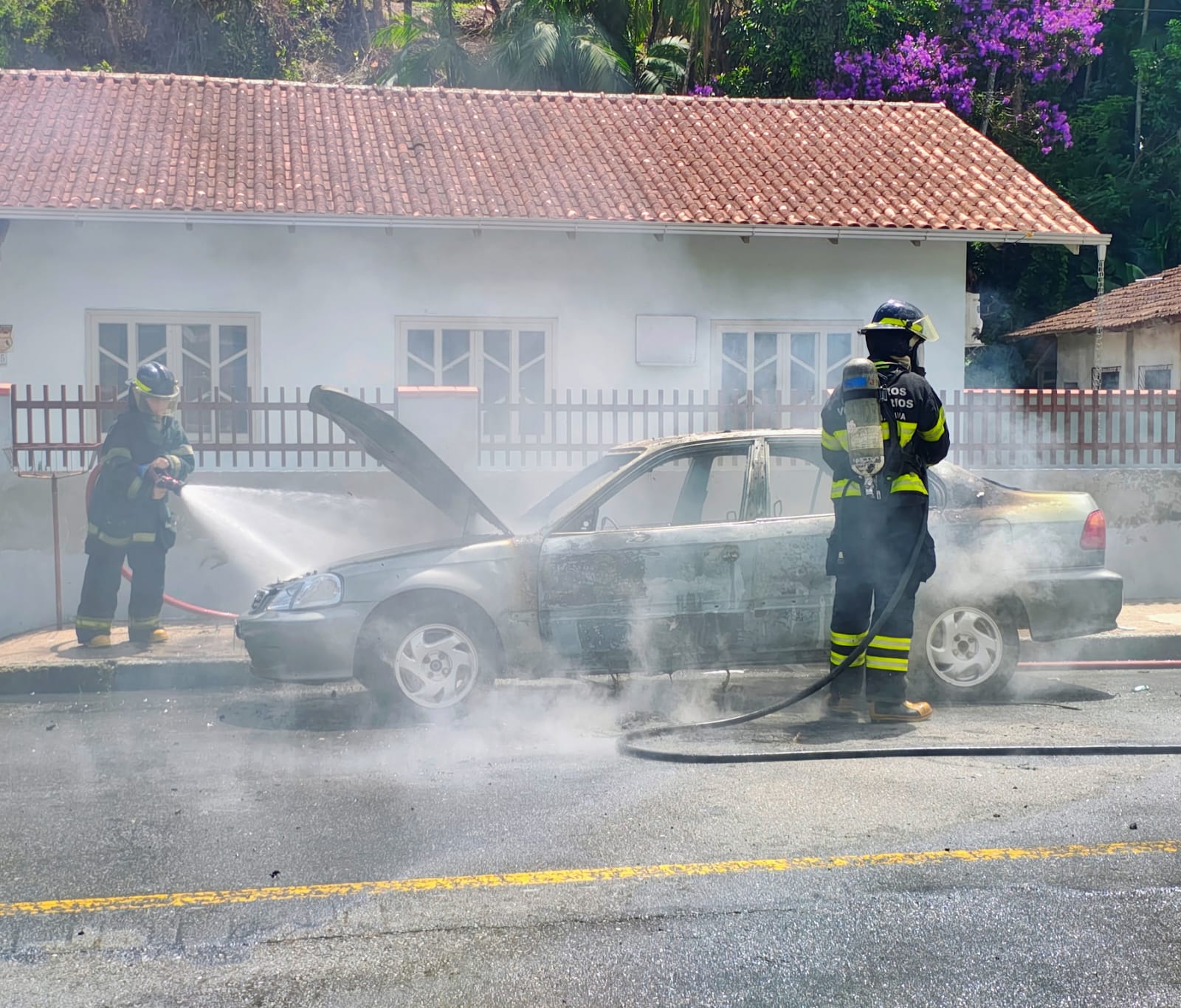 O Corpo de Bombeiros Voluntários foi acionado e deslocou um caminhão com cinco bombeiros até o local para atender à ocorrência. As chamas atingiram um automóvel Honda Civic que estava estacionado na via pública.