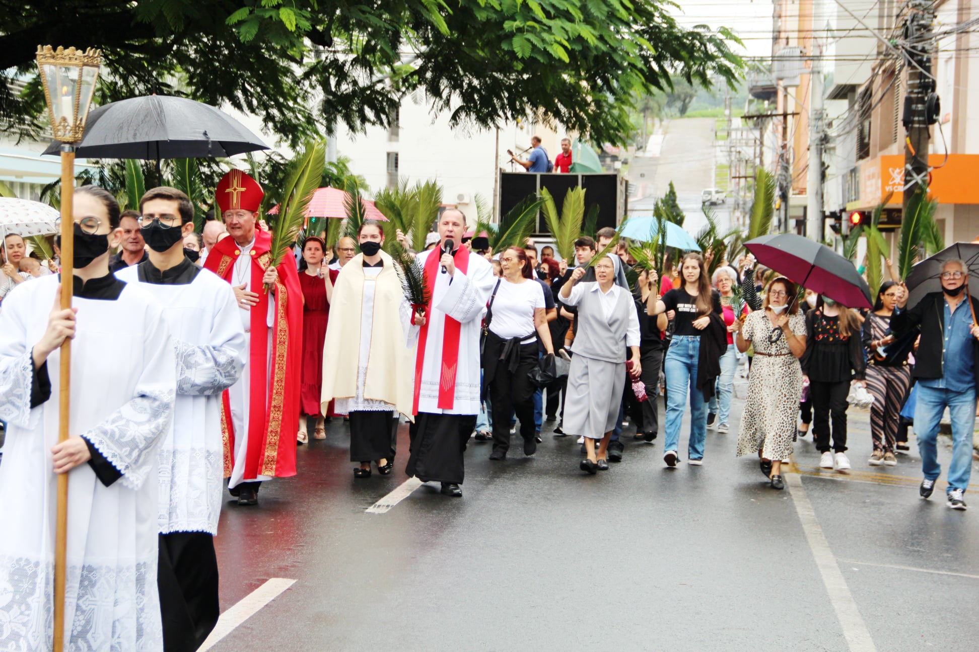 A solenidade de rito da Bênção e Procissão de Ramos marca o início da Semana Santa, período litúrgico na qual os fiéis celebram os mistérios da Paixão, Morte e Ressurreição de Jesus Cristo.