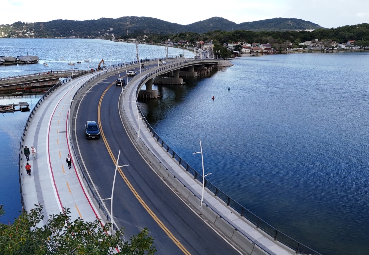 A ciclovia e as novas passagens de pedestres da nova ponte da Lagoa da Conceição foram liberadas pela Prefeitura de Florianópolis no final da manhã desta sexta-feira (26). Com isso, para a conclusão total da obra ficará faltando apenas a retirada do escoramento de madeira, em sua parte inferior, o que deve levar cerca de duas semanas. As obras estão sendo conduzidas pela Secretaria de Infraestrutura e Manutenção da Cidade.