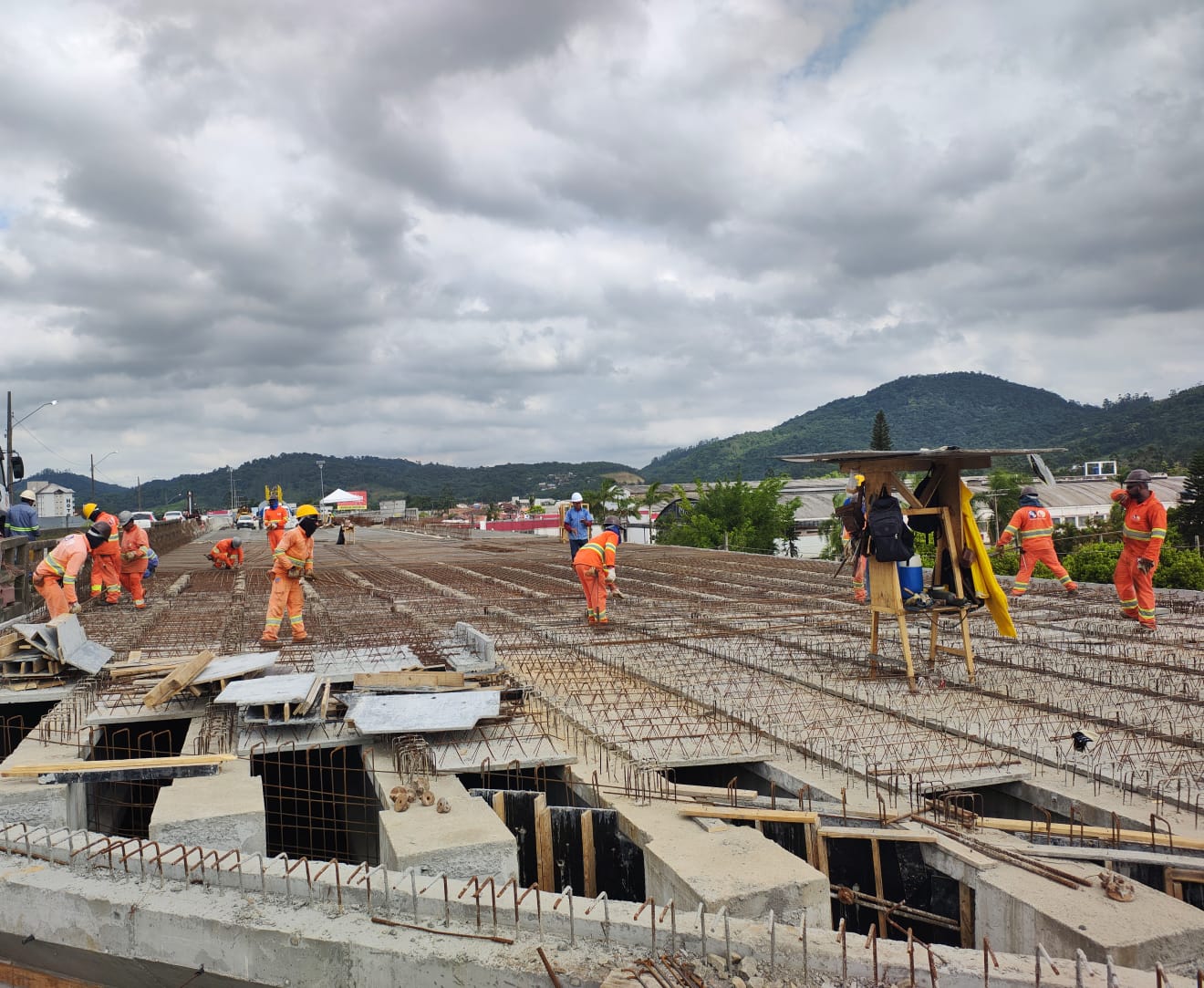 A Secretaria de Estado da Infraestrutura de Santa Catarina informou que os serviços estão na fase de superestrutura, ou seja, na parte superior do viaduto. Neste momento, está sendo realizada a concretagem da laje superior. Depois disso, a obra entra na fase de aplicação do concreto asfáltico na base para formar a pista.
