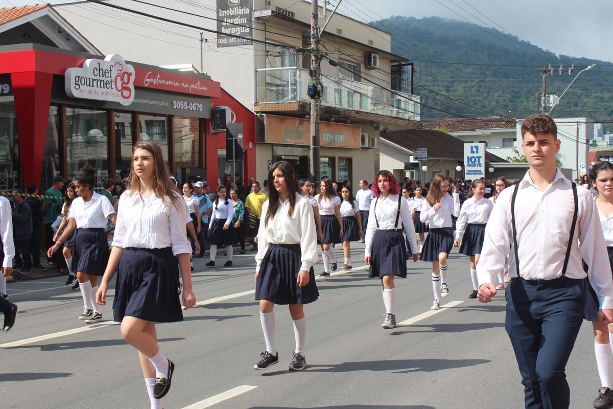 O tempo firme e as temperaturas amenas colaboraram e muito com o desfile cívico em Jaraguá do Sul na manhã deste sábado (7).