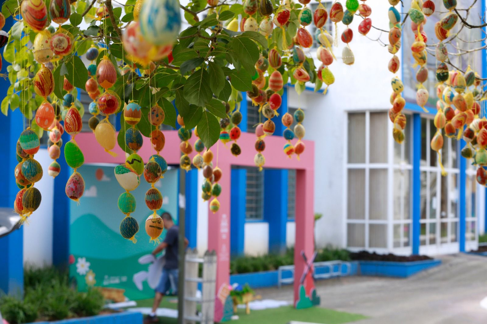 Entre 14h e 18 horas, personagens lúdicos como o Coelho da Páscoa estarão presentes para brincar com as crianças e participar das fotos.