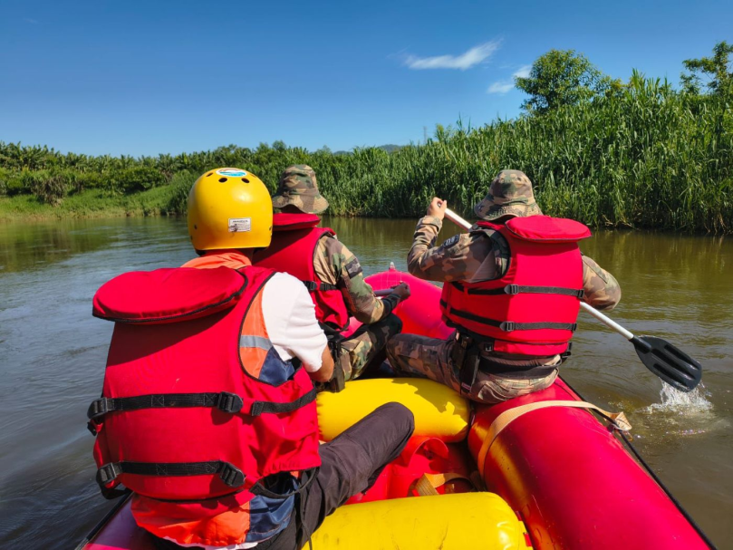 A operação contou com dois policiais ambientais, um bombeiro voluntário e um agente da Defesa Civil, e teve como objetivo verificar possíveis irregularidades e contribuir para o monitoramento da qualidade da água do rio.
