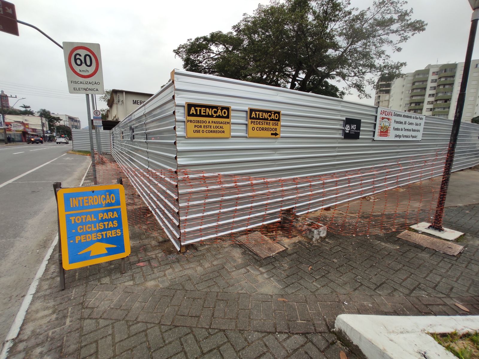Devido às obras, pedestres devem transitar pelos fundos do Mercado Municipal de Jaraguá do Sul