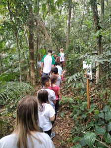 O som dos pássaros, o cheiro da terra, a visão dos insetos trabalhando e a brisa que passa entre as árvores. Essas são algumas das sensações que crianças na faixa dos oito anos da Escola Estadual Julius Karsten vivenciaram na última sexta-feira (18), quando visitaram a Eco Trilha Mata Atlântica do IFSC do Rau e tiveram, na prática, uma aula sobre o funcionamento da natureza e a importância da sua preservação.