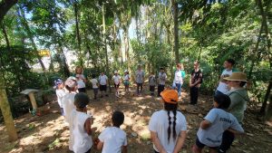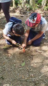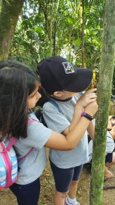 Para interagir com a mata, no início da visita as crianças recebem uma lupa e uma espátula de jardinagem. Com essas ferramentas elas observam, escavam para olhar embaixo da terra e tornam-se exploradoras do meio ambiente. “Elas percebem, por exemplo, que o solo é resultado de uma mistura de elementos e que ali existe uma microfauna que acelera a decomposição dos resíduos na mata”, aponta Thaís.