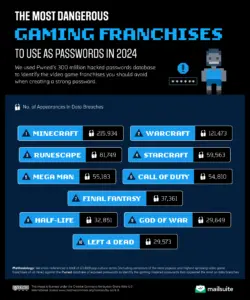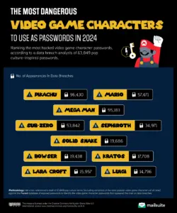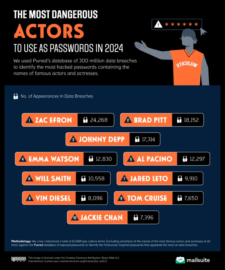 Para chegar aos resultados, a Mailsuite empresa compilou uma lista inicial de mais de 2.612 termos da cultura pop – de atores e bandas a videogames e filmes – e os cruzou com o banco de dados Pwned Passwords, que detalha mais de 300 milhões de senhas expostas em violações de dados registradas.